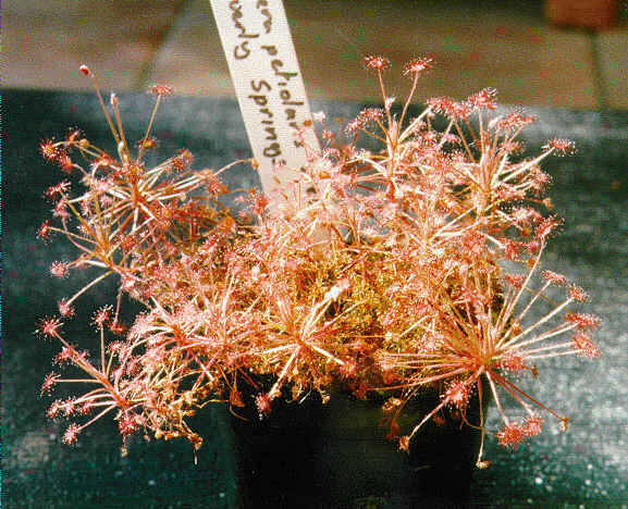 The photograph shows a large number of plants all raised from seed. These have been grown in peat/sand compost and germination required high temperatures (25 degC +) and high humidity. Thus these tropical Australian Drosera are not that difficult to raise from seed.