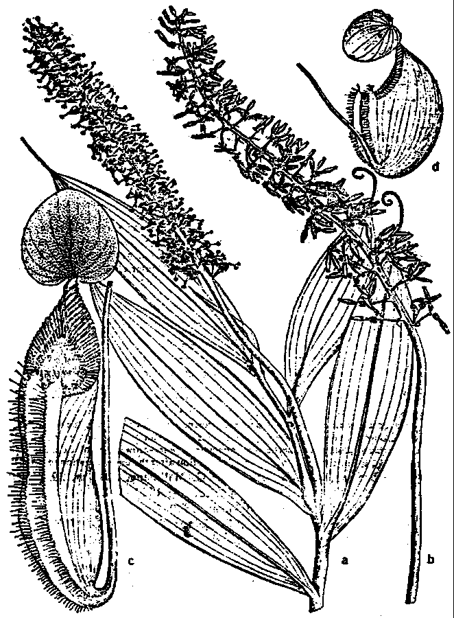 Fig. 17. Nepenthes pectinata ; a. upper portion of a stem with male