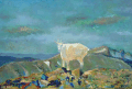 From a picture by my sister, Kristen, taken in near Yellowstone National Park. This picture reminds me of a gruelling climb that our family made to the top of Mt. Baldy in southern California. 18"x27" acrylic on canvas.