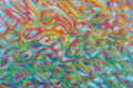 This started out as a painting of bamboo shadows and then turned into an attempt to increase constrast and saturation while still keeping the shapes and patterns "interesting". It was painted, and can be displayed, in all 4 orientations. I see lots of interesting shapes: horses, humans, crabs, bunnies, birds, and so on. It proves that the unconcious is constantly expressing itself whether we are conciously controlling it or not. Stretched canvas.