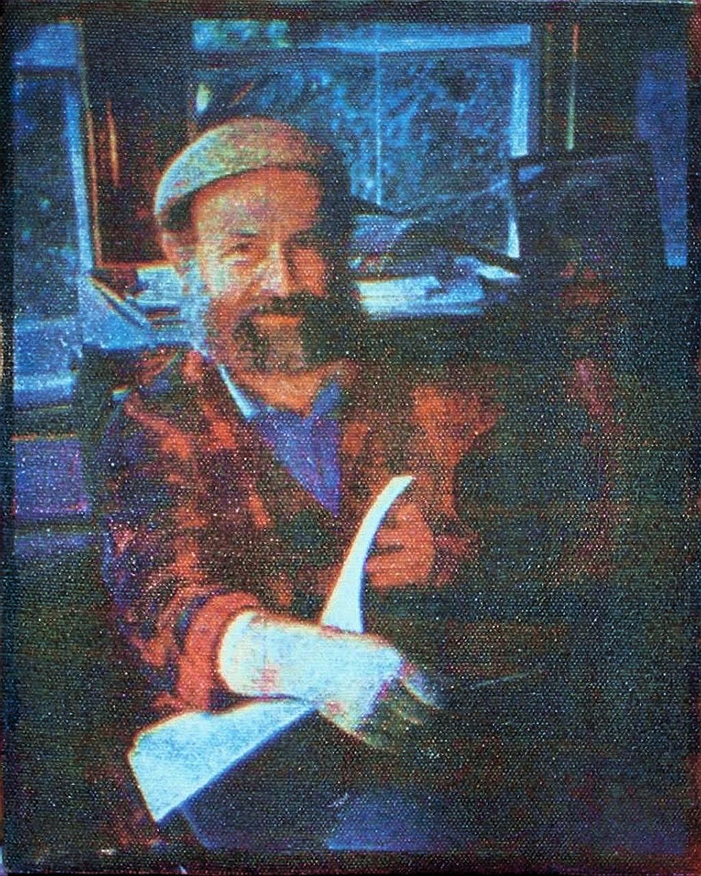 My Father. Background is latex housepaint and acrylic applied on canvas with a roller.